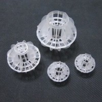 采用聚丙烯(PP)塑料制成球狀,由兩個半球合成一個球形,每個半球上根據設計需要有8-12個半扇形葉片,兩個半球的扇形葉片相互錯開。該填料特點是比表面積大,空隙率較高。但是由于葉片數偏多,彼此間有遮蔽效應,不利于液體分布和潤濕;液體大多在球體空心柱聚集,阻礙氣體暢通,因此阻力較大。此種填料多用于廢氣處理和水處理工程