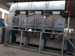 催化燃燒過程是在催化燃燒有機廢氣處理設備中進行的。有機廢氣先通過熱交換器預熱到200~400℃,再進入燃燒室,通過催化劑床時,碳氫化合物的分子和混合氣體中的氧分子分別被吸附在催化劑的表面而活化。由于表面吸附降低了反應的活化能,碳氫化合物與氧分子在較低的溫度下迅速氧化,產生二氧化碳和水。催化燃燒反應的關鍵是選擇合適的催化劑。對催化劑的要求是:活性高,特別要低溫活性好,以便在盡可能低的溫度下開始反應。燃燒反應是放熱反應,釋放出大量的熱可使催化劑的表面達到 500~1000℃的高溫,而催化劑容易因熔融而降低活性,所以要求催化劑能耐高溫