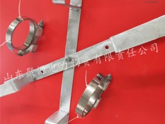 3、用鋼帶抱箍纏繞電桿,并用螺栓將余纜架緊固到鋼帶抱箍上,注意鋼帶要疊壓,防止滑脫。