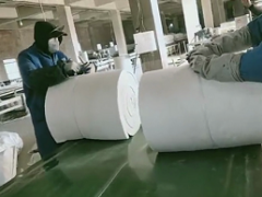2、硅酸鋁纖維由甩絲成纖工藝生產(chǎn)普通型、高純型、高鋁型、含鋯型硅酸鋁纖維棉,經(jīng)針刺、熱定型、縱橫切、打卷等工序制成。各種針刺毯除具有對應(yīng)品種散狀硅酸鋁纖維棉相同的優(yōu)良性能外,并具有優(yōu)良的抗拉強(qiáng)度。