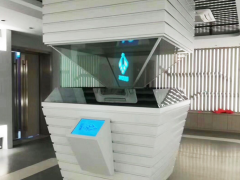 柜體時尚美觀,有科技感;頂端四面透明,真正的空間成像;色彩鮮艷,對比度,清晰度高;有空間感,感,形成空中幻象;中間可結(jié)合實物,實現(xiàn)影像與實物的結(jié)合;也可配加觸摸屏實現(xiàn)與觀眾的互動;