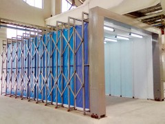 伸縮式噴漆房由伸縮式噴漆房和干式噴漆柜兩部分組成。其長寬高可以根據客戶要求設計和制作。伸縮式噴漆房通稱伸縮房。伸縮房的結構包括伸縮移動房體、伸縮軌道、照明系統、伸縮警示系統、電控系統組成。移動房體由驅動龍門架、從動伸縮架、伸縮連桿組成。
