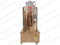 釀酒設(shè)備可用于生料釀造又可用于熟料釀造,全程自動(dòng)化控制,不需壘灶,買回即用,大大節(jié)省了燃料!釀酒設(shè)備深受大眾喜愛。那么釀酒設(shè)備原理是怎樣的?釀酒設(shè)備結(jié)構(gòu)及功能又是怎樣的?下面跟隨小編一起看看吧! 釀酒知識(shí):釀酒設(shè)備的原理及功能 釀酒設(shè)備的工作原理: 酒中含有水、乙醇和總量約占2%的眾多微量成分三大物質(zhì)。水和乙醇的比例構(gòu)成酒的度數(shù),含水量高則酒度低,含水量低則酒度高。微量成分的種類、含量及各種微量成分之間的比例構(gòu)成酒的品質(zhì),很多微量成分直接降低酒的品質(zhì),更多的微量成分含量過高也會(huì)降低酒的品質(zhì)。影響酒質(zhì)的這些微量成分其沸點(diǎn)都在100℃以上,水的沸點(diǎn)時(shí)100℃,乙醇的沸點(diǎn)78.3℃。根據(jù)三大物質(zhì)的不同沸點(diǎn)及酒度、酒質(zhì)形成的原理,我們?cè)O(shè)計(jì)了該設(shè)備。 釀酒設(shè)備結(jié)構(gòu)及功能: 該設(shè)備由蒸鍋、可調(diào)鍋蓋、導(dǎo)氣管、和冷卻器組成,其主要功能在鍋蓋部分。鍋蓋內(nèi)有多個(gè)夾層和多層阻隔,有預(yù)冷系統(tǒng)、過濾系統(tǒng)和回流系統(tǒng),可自由控溫,儀表顯示。酒蒸汽通過鍋蓋時(shí),經(jīng)多層阻隔、過濾、預(yù)冷后,溫度逐步下降至80℃左右。這樣可達(dá)到以下效果。 調(diào)高酒度。當(dāng)酒蒸汽的溫度降至80℃時(shí)(低于水的沸點(diǎn)但高于乙醇的沸點(diǎn)),蒸汽中的部分水份變成液態(tài)通過回流蒸鍋內(nèi)。這樣,酒蒸汽中的水份減少了,冷卻成酒后,酒度就提高了。熟練掌握調(diào)酒技術(shù)后,通過控制蒸汽溫度的高低,可使酒度在10~90度間調(diào)節(jié),沒有酒尾(可將酒尾的酒度調(diào)高)。因此,釀高度酒的用戶尾提高高度酒的產(chǎn)量,應(yīng)使用該設(shè)備。 提高酒質(zhì)。影響酒質(zhì)的物質(zhì)其沸點(diǎn)都高于100℃,根據(jù)上述原理,這些物質(zhì)也在鍋蓋內(nèi)就冷卻成液態(tài),并通過回流系統(tǒng)流回蒸鍋內(nèi)。這樣酒的品質(zhì)就大大提高了。酒質(zhì)是釀酒者市場(chǎng)競(jìng)爭(zhēng)的法寶,酒質(zhì)好則銷價(jià)也可適當(dāng)提高。因此,釀低度酒的用戶為保證酒質(zhì),也應(yīng)該使用該設(shè)備。 提高出酒率。因密封好,無酒尾,結(jié)合高產(chǎn)酒曲及其釀酒技術(shù),出酒率可提高50%