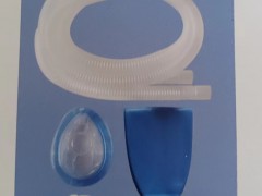 3、將一次性使用麻醉呼吸管路的一段連接于麻醉機(jī)或呼吸機(jī)上,另一端通過熱濕交換器連接著麻醉面罩或者霧化器上,為人體建立一個氣體通道。