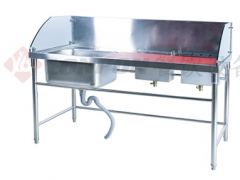 產品說明:面板采用1.2mm磨砂貼塑不銹鋼板;配不銹鋼下水器,帶渣漏;1、支撐腳管采用400mm*40mm*2.0mm不銹鋼圓管,配可調腳 2、池底帶坡、排水 暢通