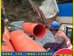 在隧道中可使用φ800*30、φ860*30的超高分子逃生管道,管節(jié)長(zhǎng)度根據(jù)現(xiàn)場(chǎng)情況來(lái)定可選用3m、6m長(zhǎng)度管節(jié),壁厚30mm,管節(jié)間可采用直徑大于逃生管道直徑的金屬帶孔抱箍連接或者采用螺栓臨時(shí)固定。為保證管道承受坍塌體的壓力,對(duì)采用的材質(zhì)管材,必須確保其承壓能力和連接頭的牢固,并經(jīng)試驗(yàn)室具體試驗(yàn)后,方可用于隧道中。 施工現(xiàn)場(chǎng)應(yīng)根據(jù)隧道圍巖、掘進(jìn)開(kāi)挖方式等情況備足管道和連接材料,除整節(jié)管道外,應(yīng)同時(shí)備足1米、2米、3米短節(jié)管道、轉(zhuǎn)接接頭。