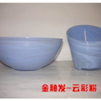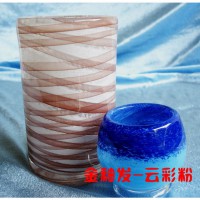 玻璃云彩粉顏料主要用于玻璃前加工上色用,玻璃云彩粉適合生產制作玻璃器皿、玻璃工藝品,燈罩等。在吹制或壓制玻璃品時,用剛挑出的玻璃料沾上玻璃云彩粉,就可以制出像云彩一樣圖案了,有云絲狀的,云團狀的,云點狀的,還可以有各種顏色的云彩,惟妙惟肖。